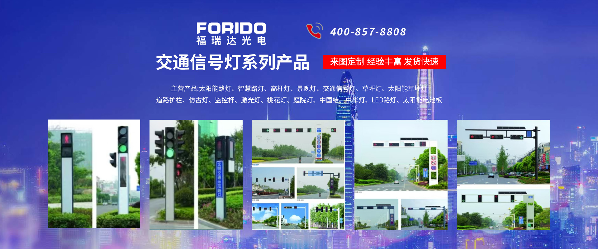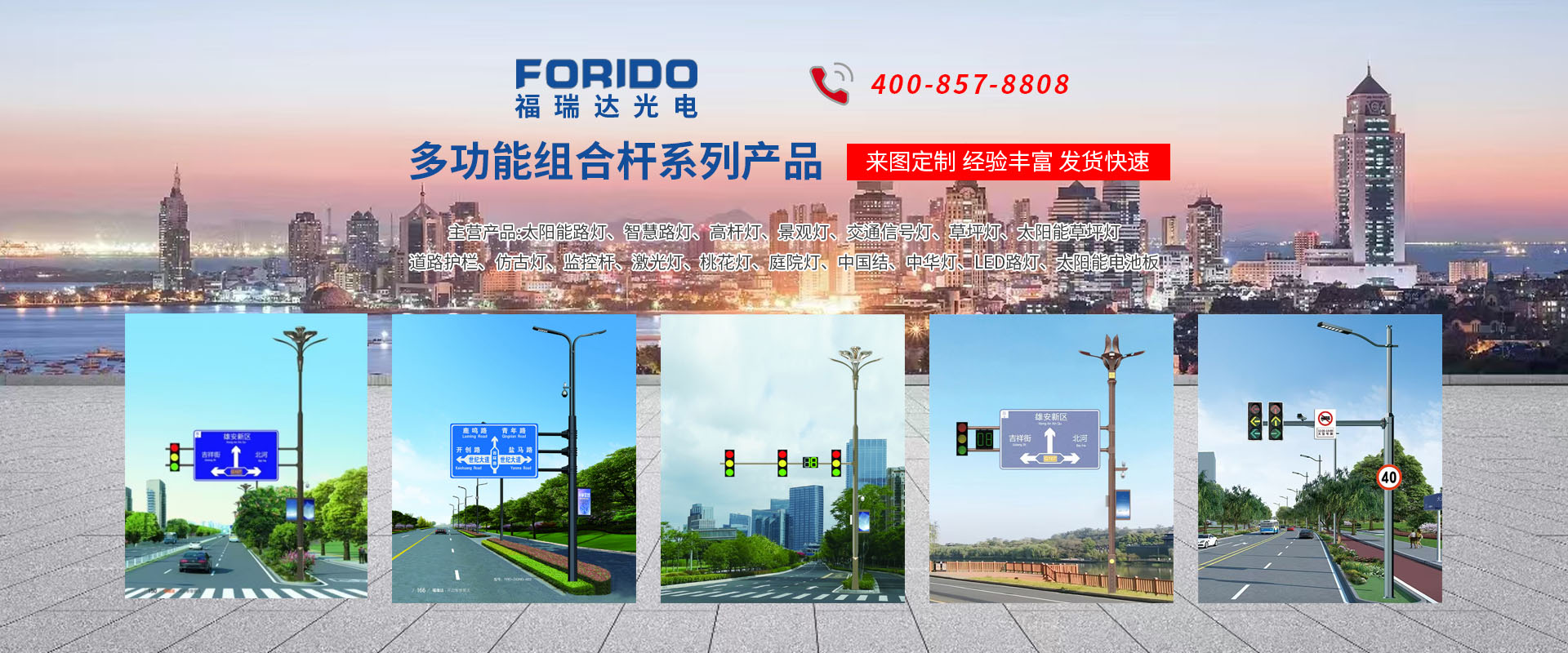 揚(yáng)州福瑞達(dá)光電科技有限公司位于淮左名都?xì)v史文化名城、中國路燈制造基地?fù)P州市北郊菱塘工業(yè)園,公司占地面積76000平方米,注冊資金10518萬元,擁有高級技術(shù)嫻熟的員工280多人,擁有大型折彎機(jī)、激光切割、數(shù)控注塑機(jī)、壓鑄機(jī)、自動埋弧焊、氣焊、彩色粉末靜電噴塑等大型自動化設(shè)備,我公司是一家集設(shè)計(jì)、研發(fā)、生產(chǎn)、銷售、施工安裝服務(wù)為一體的戶外交通照明產(chǎn)品制造商,主要生產(chǎn)智慧路燈、太陽能路燈、LED路燈、高桿燈、景觀燈、交通信號燈、交通標(biāo)志牌、通信鐵塔、路跨鋼結(jié)構(gòu)、公交站臺、太陽能光伏組件、景點(diǎn)亮化、樓宇亮化工程的設(shè)計(jì)施工等。公司秉承開拓創(chuàng)新、銳意進(jìn)取、精誠服務(wù)的企業(yè)精神,堅(jiān)持以“誠信為本、技術(shù)為先、服務(wù)是金”的合作理念,我們憑借先進(jìn)的制造工藝、優(yōu)質(zhì)的產(chǎn)品質(zhì)量、合理的市場價(jià)格和完善的售后服務(wù)贏得了廣闊的市場和客戶的信賴。 我公司已通過ISO9001質(zhì)量體系認(rèn)證、ISO14001環(huán)境管理體認(rèn)證,CQC產(chǎn)品認(rèn)證,中國節(jié)能產(chǎn)品認(rèn)證,通過“CCC”強(qiáng)制性產(chǎn)品認(rèn)證,具有市政總承包,照明,交安,設(shè)計(jì)等資質(zhì)···